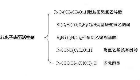 R- 一般为饱和的或不饱和的 C12~18 的烃基,可以是直链烃基,也可以是带支链的烃基。 n 是环氧乙烷的加成数,也就是表面活性剂分子中氧乙烯基的数目。 n 越大,分子亲水基上的氧越多,与水就能形成更多的氢键,水溶性就越好。 n=1~5 时,产物能溶于油而不溶于水,常做为制备硫酸酯类阴离子表面活性剂的原料。 n=6~8 时,能溶于水,常用作纺织品的洗涤剂和油脂乳化剂。 n=10~20 时,在工业上用作乳化剂和匀染剂。